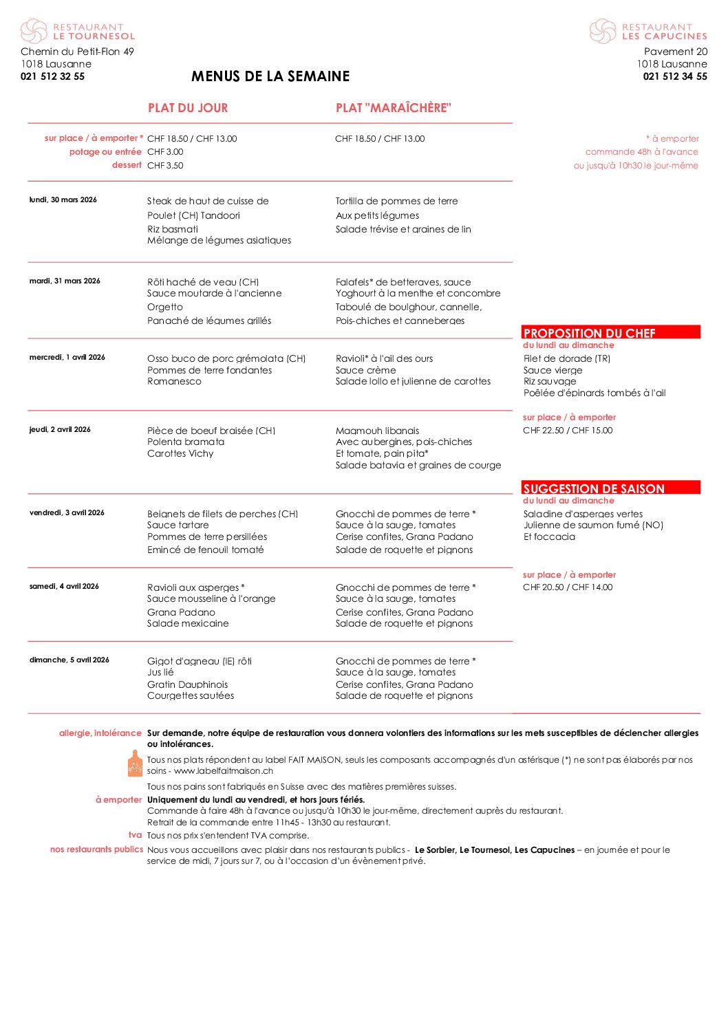 Découvrez les menus de la semaine
